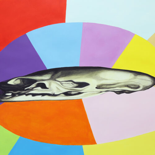 Chez Paul Hutzli, le bois existe en trompe-l’œil, pratique qui s’inscrit plus largement dans son travail. N’ayant pas de médium de prédilection, il emprunte souvent techniques et matériaux à des artisanats carnavalesques, culinaires ou DYI qu’il va aborder en autodidacte. Dans cette exposition, il emploie du papier mâché repeint et verni à la manière de l’artisanat des masques du carnaval de Bâle. Cette technique, dont on fit autrefois des meubles et de somptueux décors comme celui du théâtre de Marie-Antoinette, est aujourd’hui relégué aux bricolages enfantins et aux loisirs créatifs amateurs. Paul Hutzli travaille ainsi le faux et son usage en art. En prônant le mélange des genres, les pratiques savantes – ou pensées comme telles – et les autres, celles qui appartiendraient aux Beaux-Arts et celles qui seraient artisanales, il démonte et s’amuse de ces classements artificiels. Facétieux, son travail garde l’essentiel du carnaval, qui n’est autre qu’un temps de renversement des valeurs pour mieux les interroger.