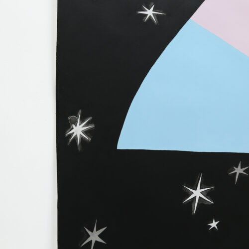 Ce grand dessin fait partie d’une série que j’ai commencée lors de ma résidence au Swiss Institute de Rome, où je m’intéressais à la tension entre les cosmogonies symboliques chrétiennes et celles du carnaval. J’ai découvert cette dernière grâce à l’anthropologue français Claude Gaignebet, qui m’a fait découvrir toute une vision du monde, avec ses mythes, ses rituels et son calendrier, qui a progressivement disparu au début de l’ère moderne. Cette « version » plus joyeuse du christianisme – qui présentait une certaine porosité avec les pratiques païennes, recèle pourtant des motifs très poétiques et inspirants, qui ont influencé mes dessins et certains poèmes que j’ai écrits pendant mon séjour à Rome.